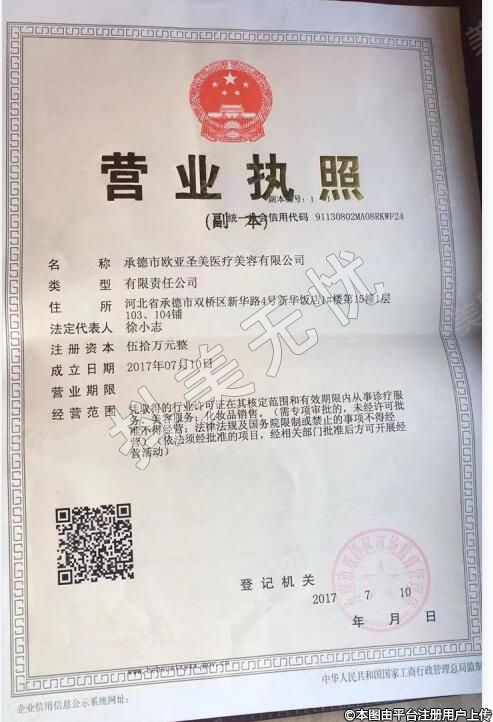 機(jī)構(gòu)名稱(chēng):承德歐亞圣美醫(yī)療美容門(mén)診部