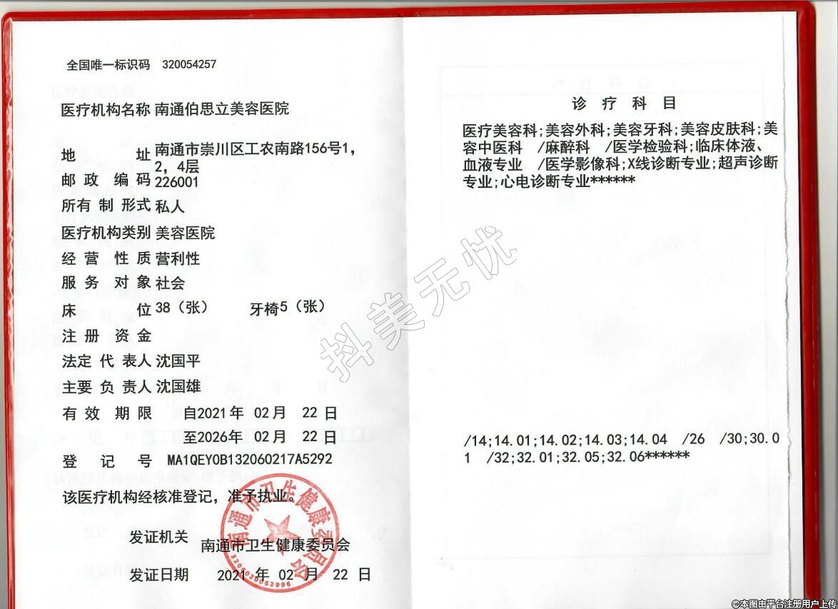 醫(yī)療機(jī)構(gòu)名稱:南通伯思立美容醫(yī)院