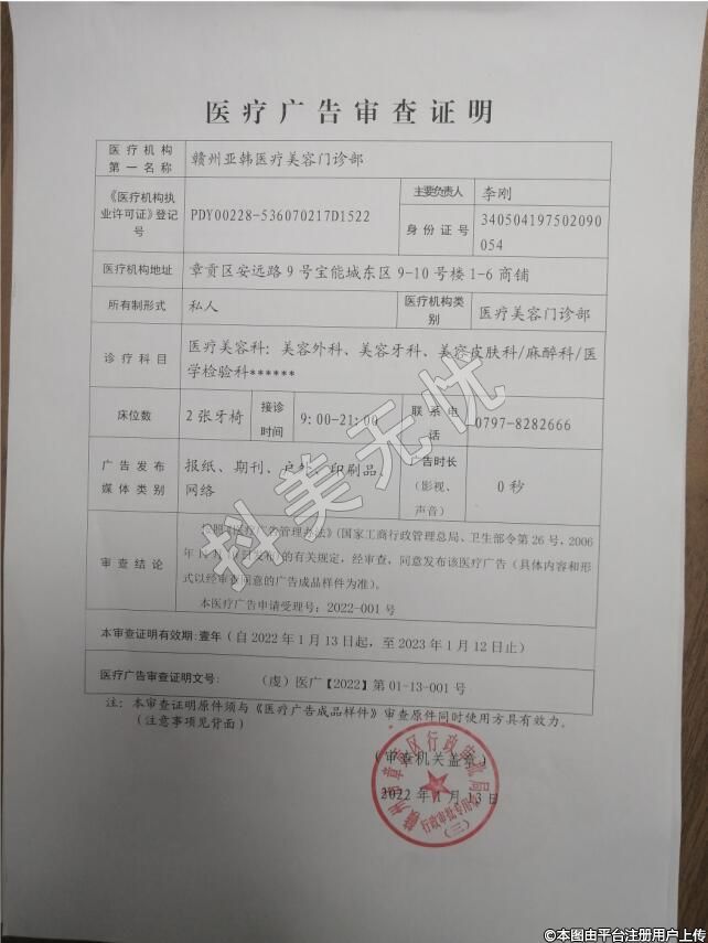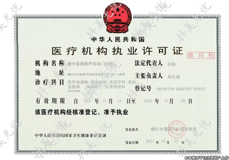 機(jī)構(gòu)名稱:贛州亞韓醫(yī)療美容門診部