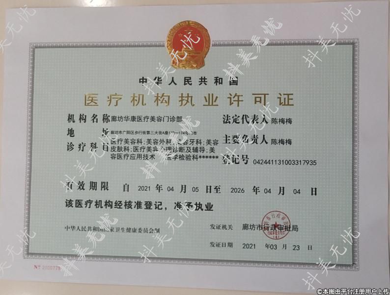 機構(gòu)名稱:廊坊華康醫(yī)療美容門診部