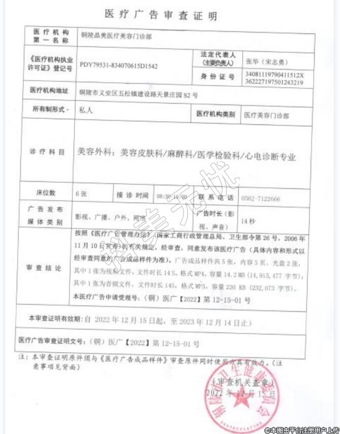 機構名稱:銅陵晶美醫(yī)療美容門診部