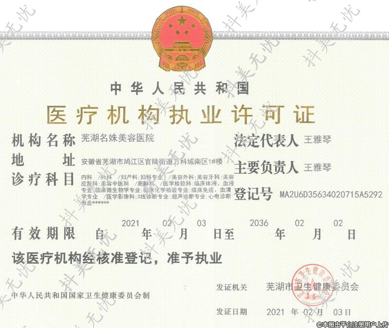 發(fā)證機關:蕪湖市重生健康委員會