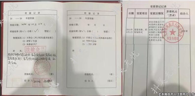 校驗(yàn)合格診療科目,醫(yī)療美容科(美容外科、美容皮膚科)、醫(yī)學(xué)檢驗(yàn)科、臨床體液、血液專(zhuān)業(yè)