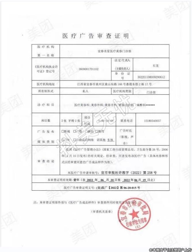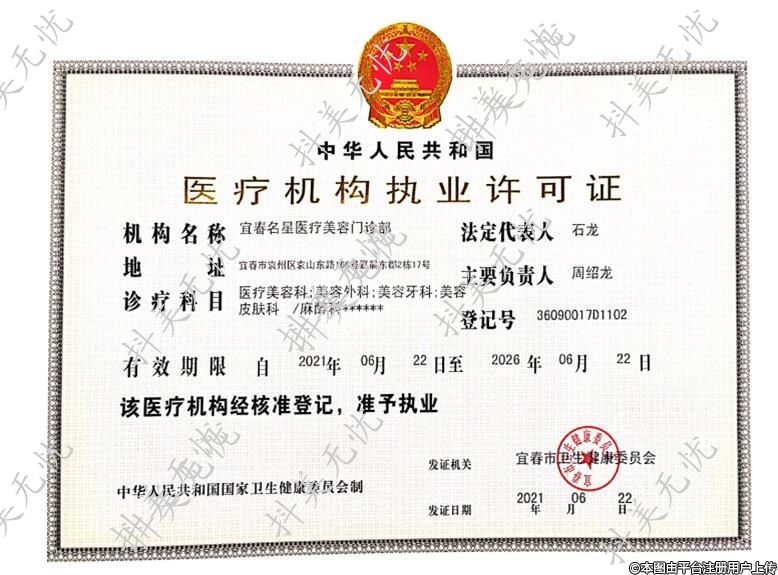 機構(gòu)名稱:宜春名星醫(yī)療美容門診部