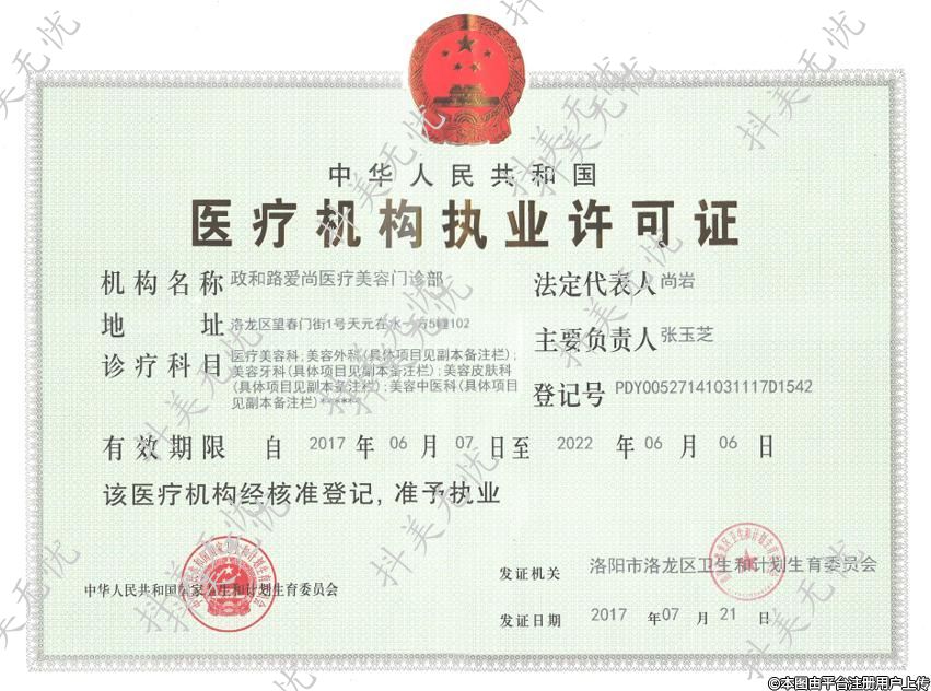 發(fā)證機關:洛陽市洛龍區(qū)衛(wèi)生和計劃生育委員會