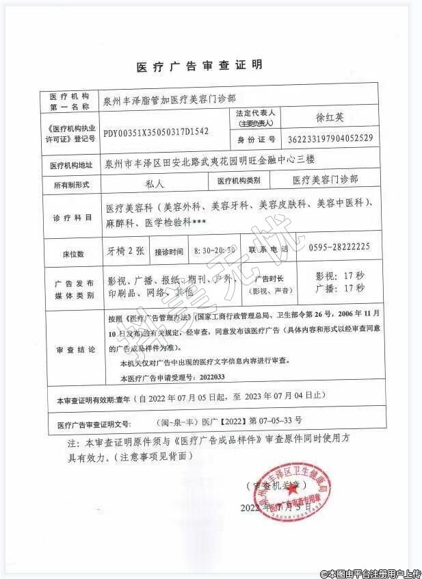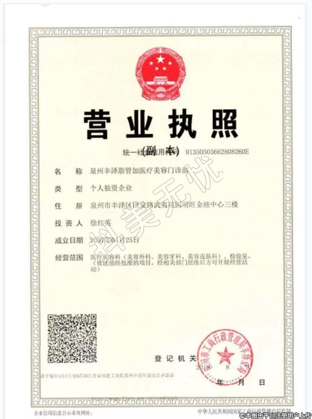 機(jī)構(gòu)名稱:泉州豐澤脂管加醫(yī)療美容門(mén)診部