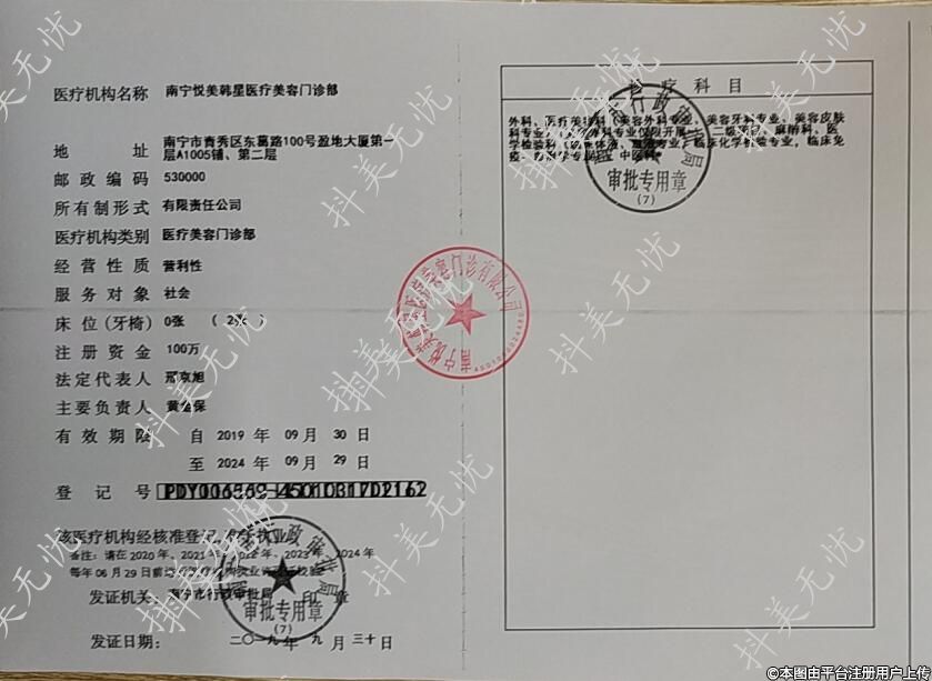 醫(yī)療機構名稱:南寧悅美韓星醫(yī)療美容門診部