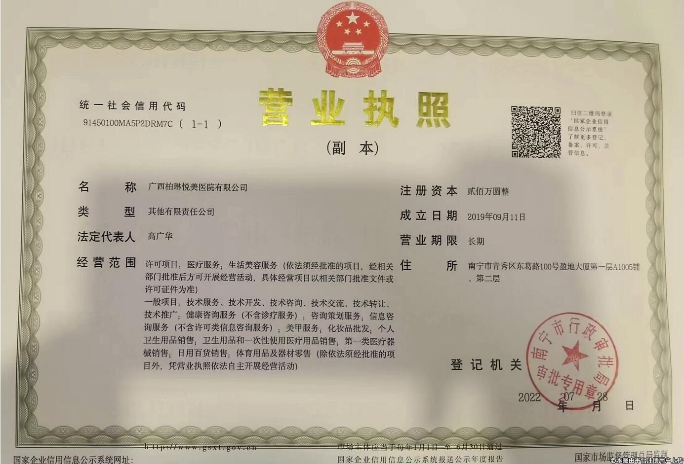 發(fā)證機關:南寧市行政審批局