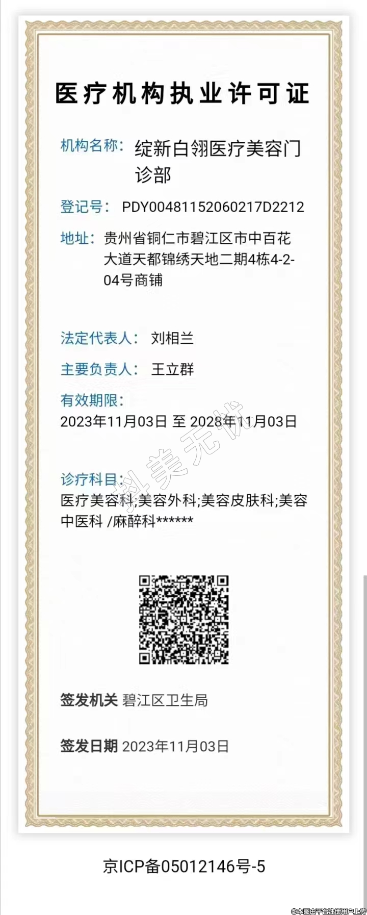 簽發(fā)機(jī)關(guān):碧江區(qū)衛(wèi)生局
