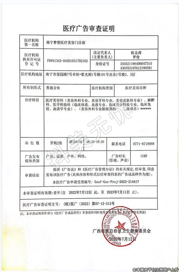 機(jī)構(gòu)名稱:南寧夢(mèng)想醫(yī)療美容門診部