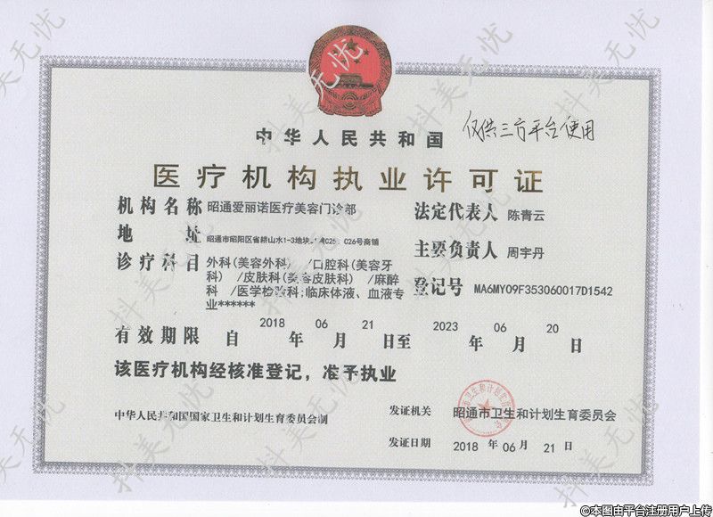 機(jī)構(gòu)名稱(chēng):昭通愛(ài)麗諾醫(yī)療美容門(mén)診部