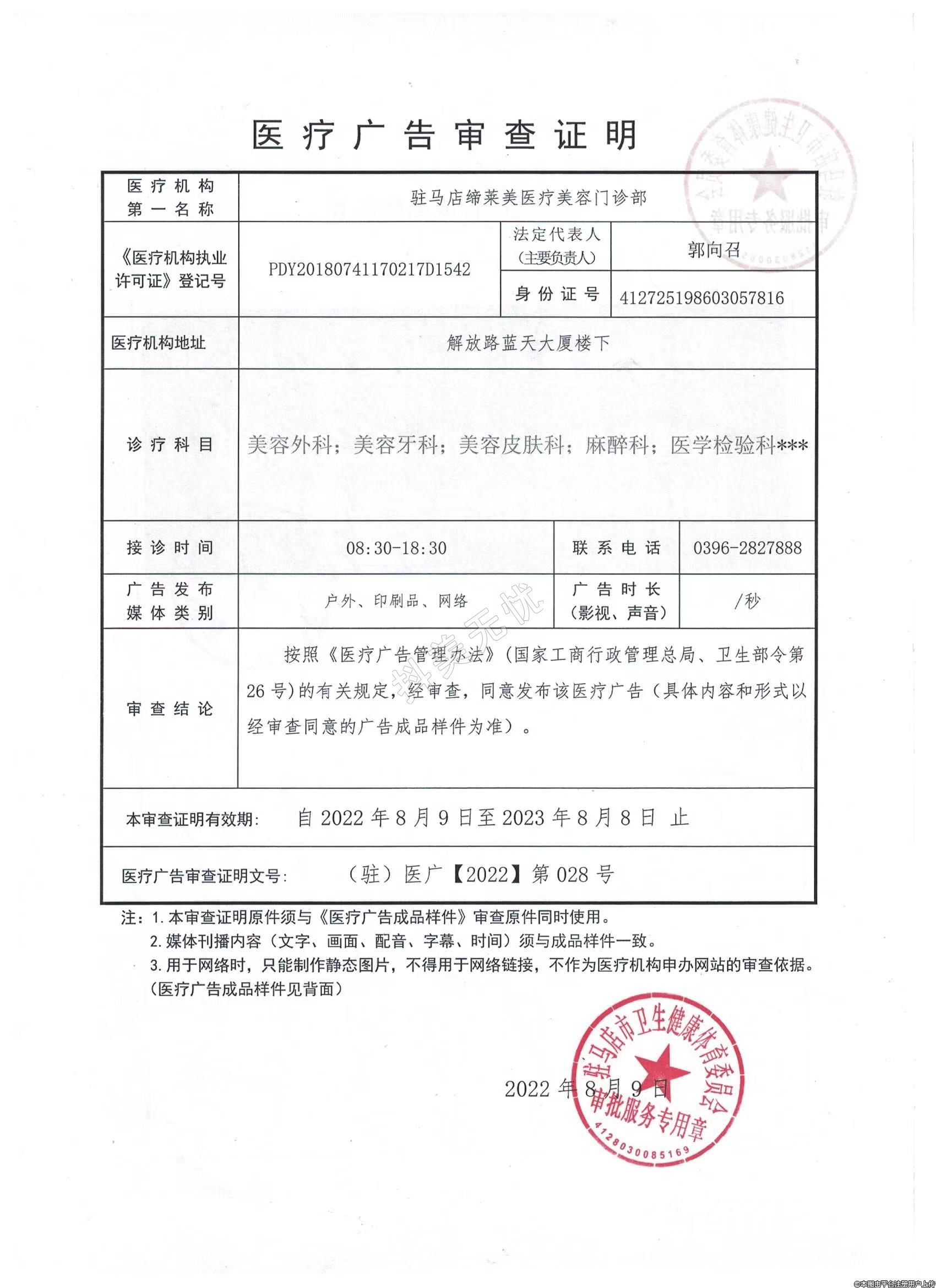發(fā)證機關(guān):駐馬店市驛城區(qū)衛(wèi)生和計劃生育委員會
