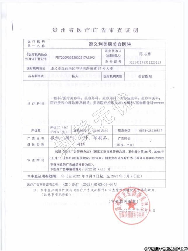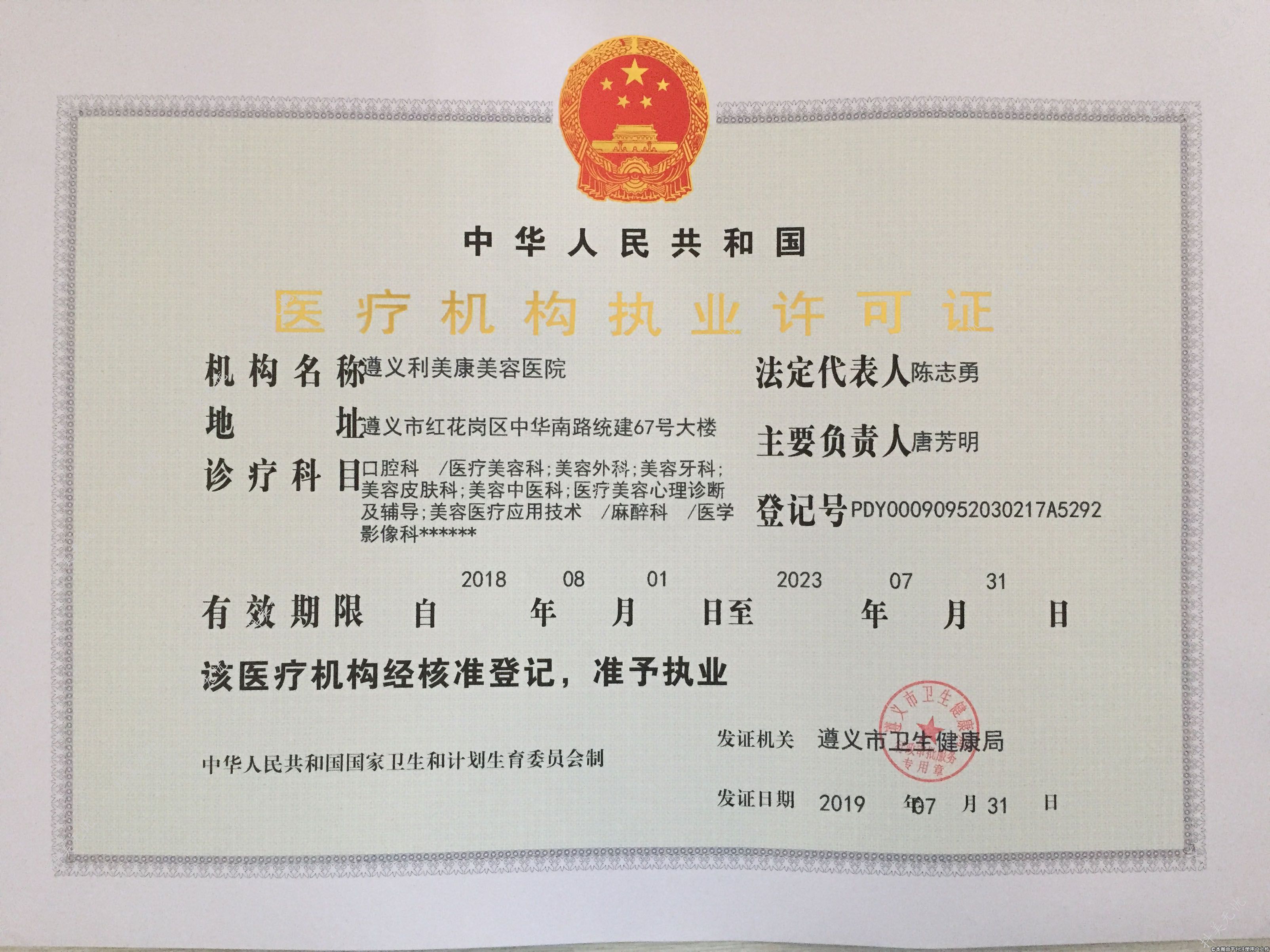 發(fā)證機(jī)關(guān):遵義市衛(wèi)生健康局
