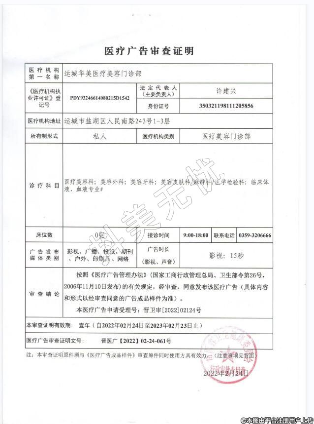 醫(yī)療機構(gòu)名稱:運城華美醫(yī)療美容門診部