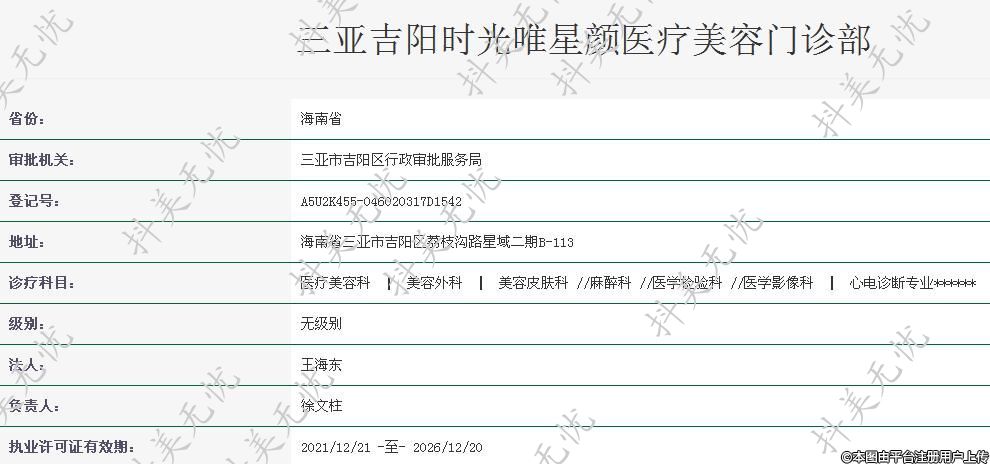 機(jī)構(gòu)名稱:三亞吉陽(yáng)時(shí)光唯星顏醫(yī)療美容門診部