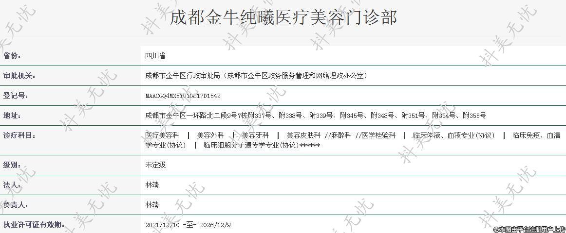 機構名稱:成都金牛純曦醫(yī)療美容門診部
