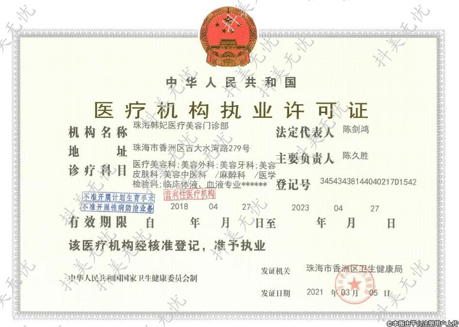 機構(gòu)名稱:珠海韓妃醫(yī)療美容門診部