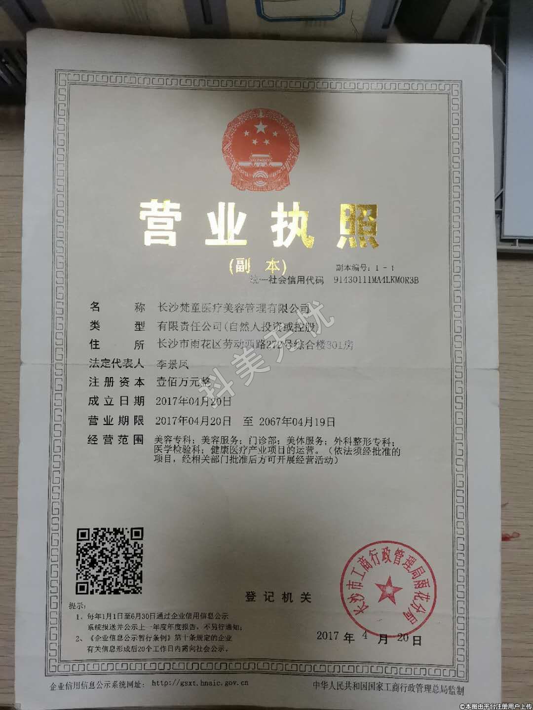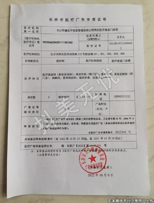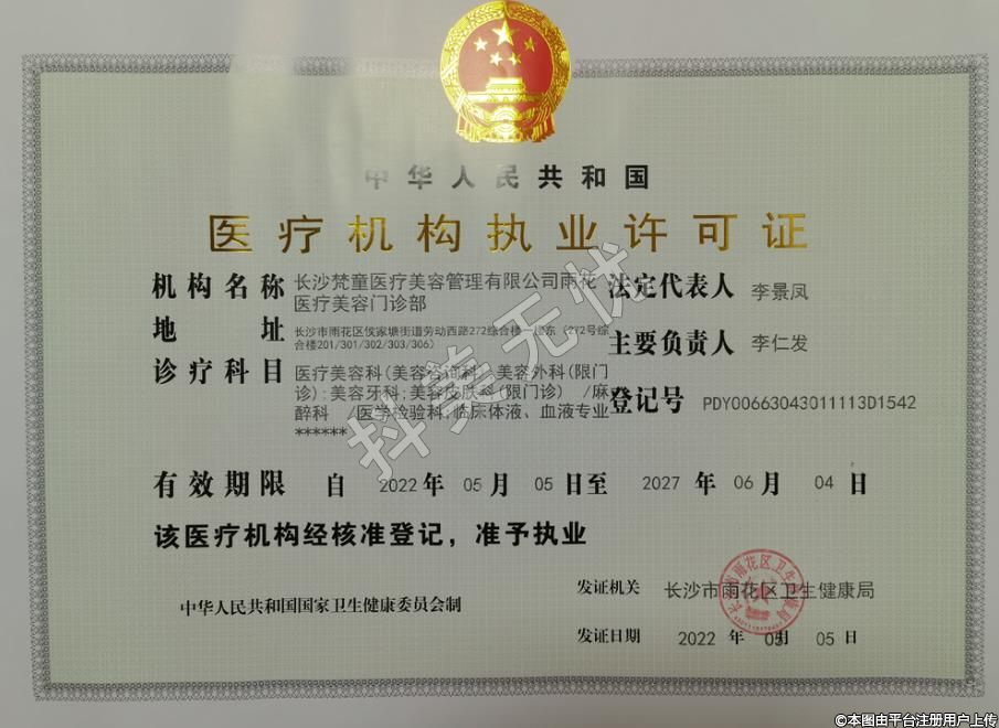 機構(gòu)名稱:長沙焚童醫(yī)療美容管理有限公司雨花區(qū)醫(yī)療美容門診部。