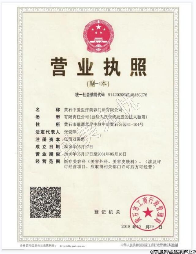 機(jī)構(gòu)名稱:黃石中愛(ài)醫(yī)療美容門(mén)診部