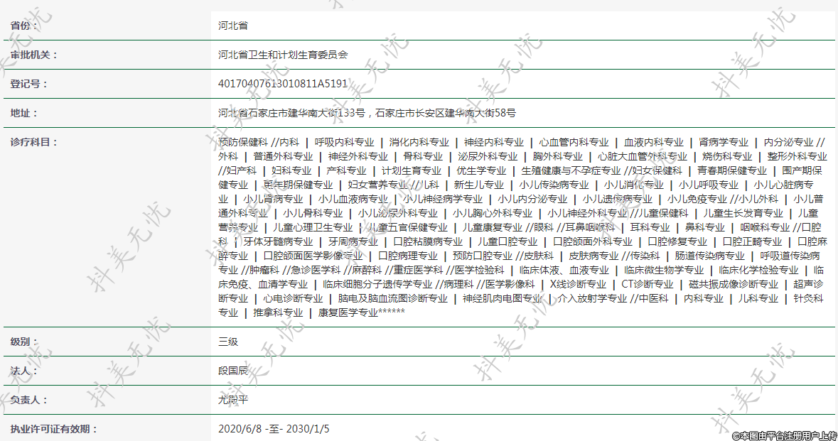 執(zhí)業(yè)許可證有效期:2020/6/8 -至- 2030/1/5