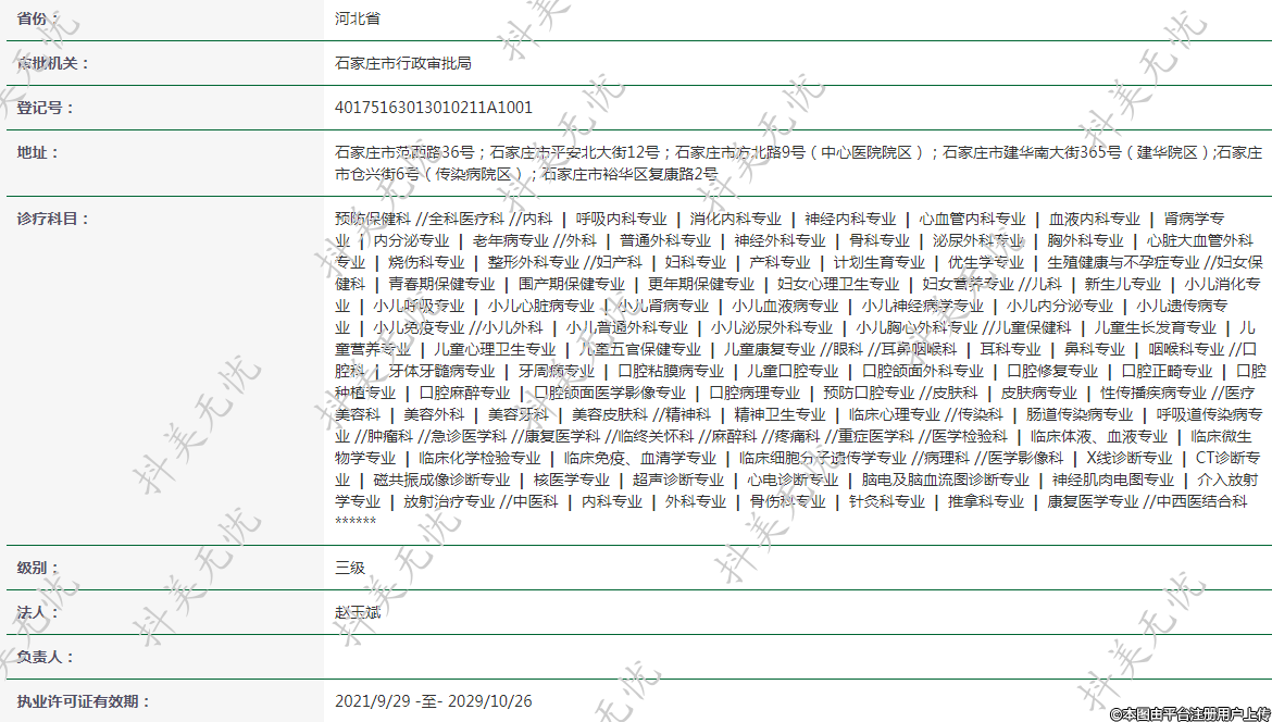 地址:石家莊市范西路36號;石家莊市平安北大街12號;石家莊市方北路9號(中心醫(yī)院院區(qū));石家莊市建華南大街365號(建華院區(qū));石家莊市倉興街6號(傳染病院區(qū));石家莊市裕華區(qū)復康路2號