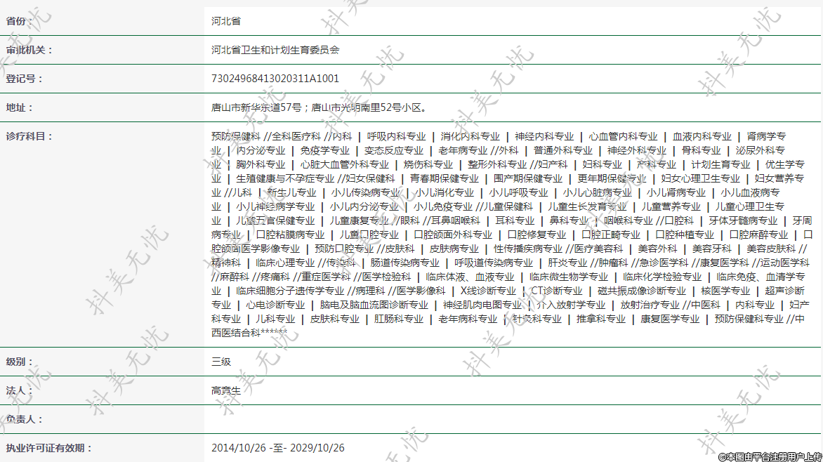 執(zhí)業(yè)許可證有效期:2014/10/26 -至- 2029/10/26