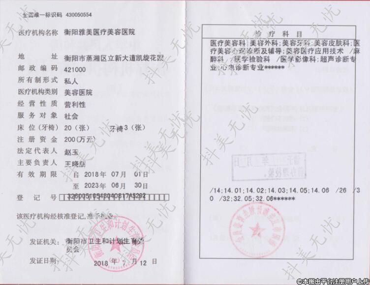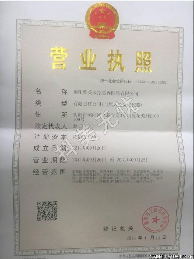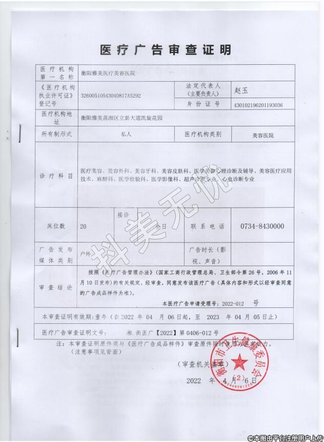 醫(yī)療機構名稱:衡陽雅美醫(yī)療美容醫(yī)院