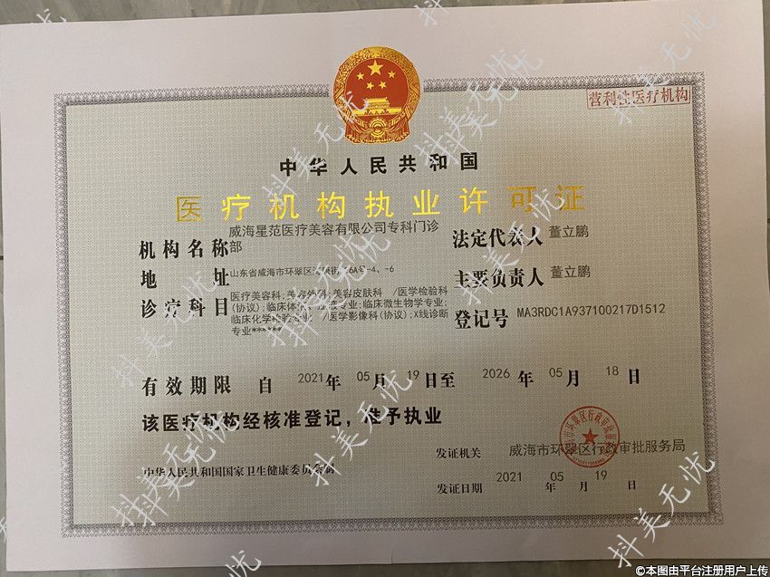 機構名稱:威海星范醫(yī)療美容有限公司專科門診部