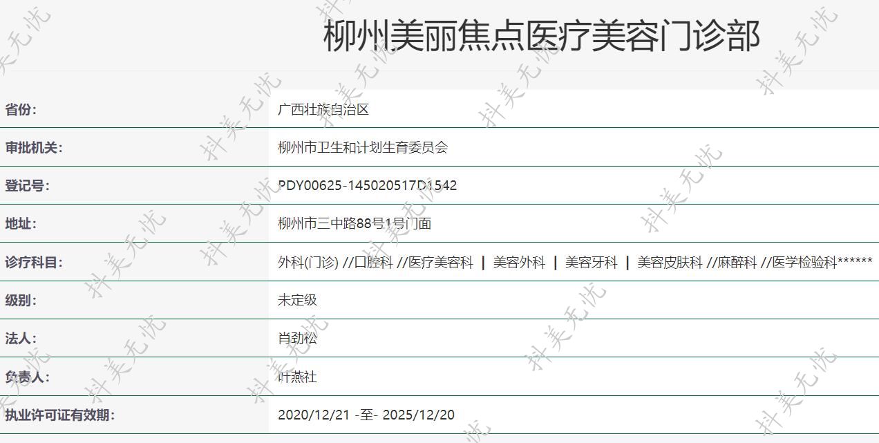 機(jī)構(gòu)名稱(chēng):柳州美麗焦點(diǎn)醫(yī)療美容門(mén)診部
