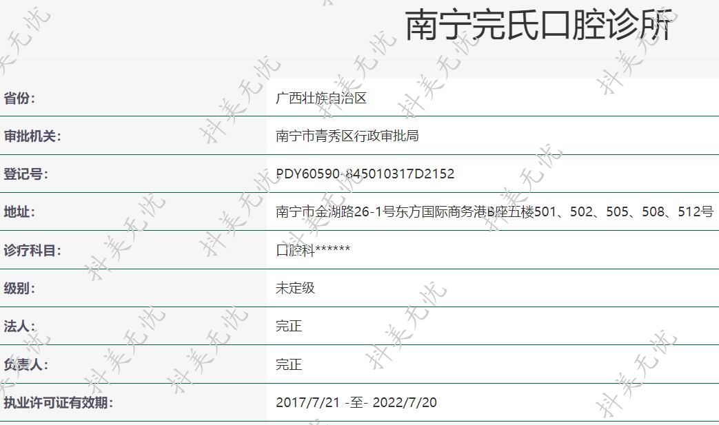 機(jī)構(gòu)名稱:南寧完氏口腔診所