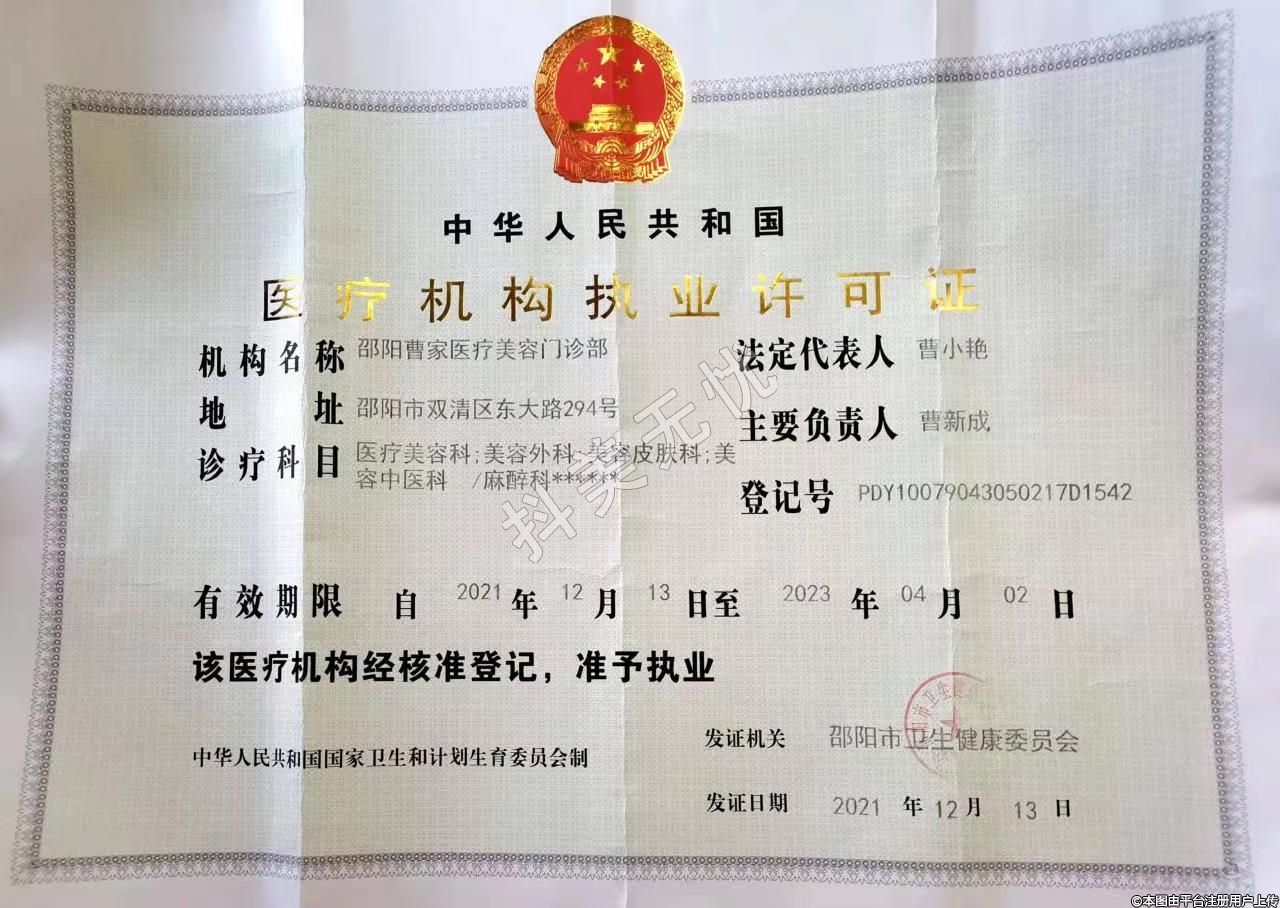 醫(yī)療機(jī)構(gòu)名稱:邵陽曹家醫(yī)療美容門診部