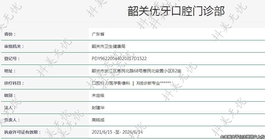 機(jī)構(gòu)名稱:韶關(guān)優(yōu)牙口腔門診部