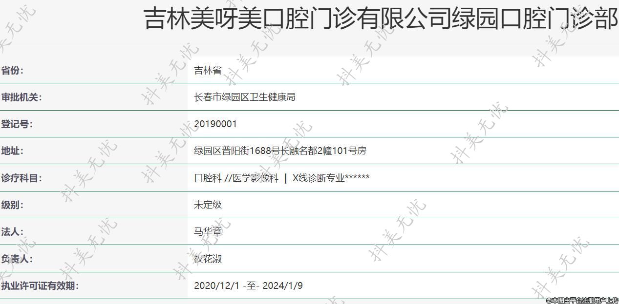 機(jī)構(gòu)名稱:吉林美呀美口腔門(mén)診有限公司