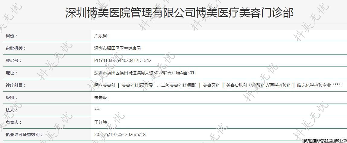 機構名稱:深圳博美醫(yī)院管理有限公司博美醫(yī)療美容門診部