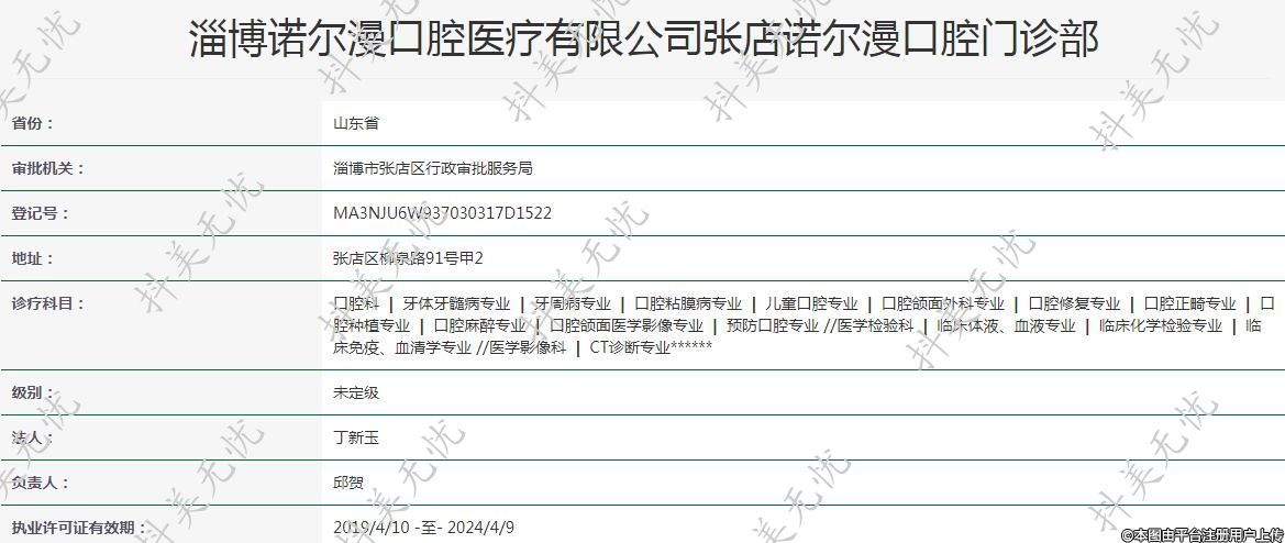 淄博諾爾漫口腔醫(yī)療有限公司張店諾爾漫口腔門診部