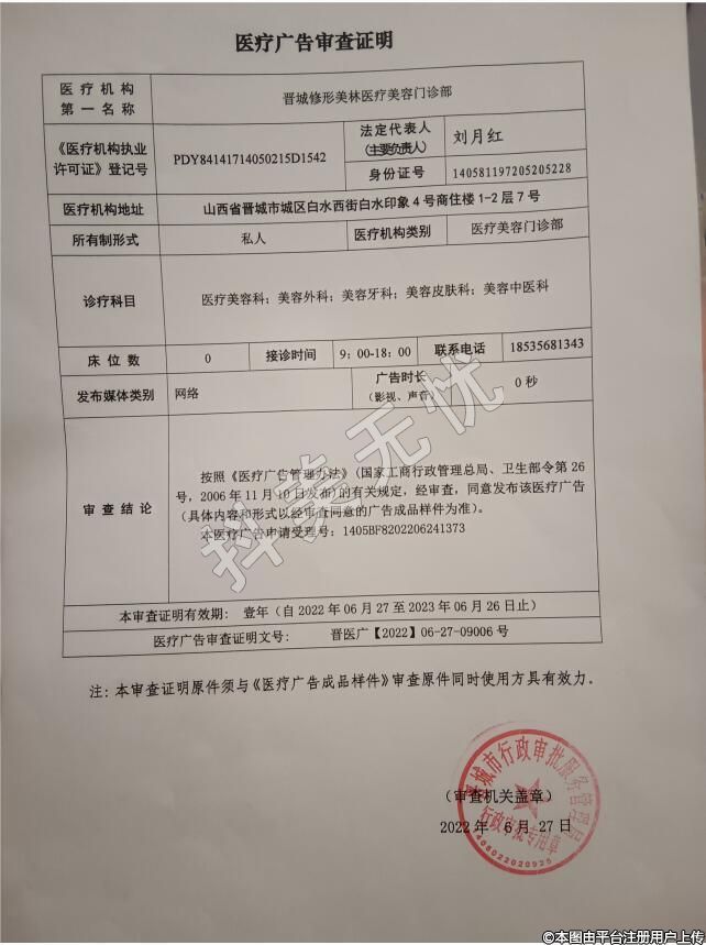 機構名稱:晉城修形美林醫(yī)療美容門診部