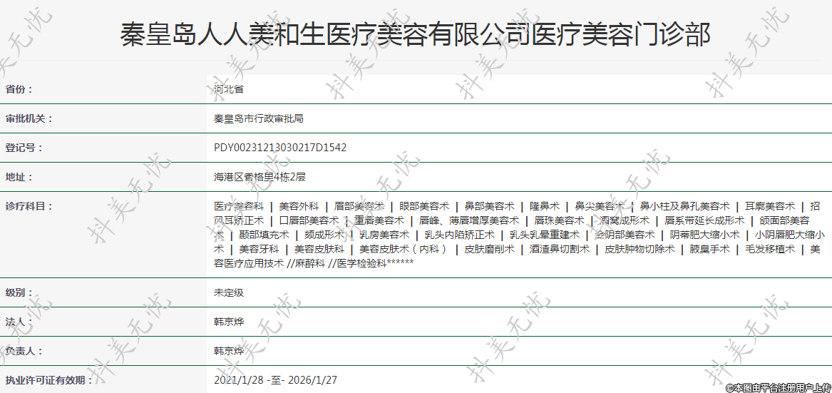 秦皇島人人美和生醫(yī)療美容有限公司醫(yī)療美容門診部