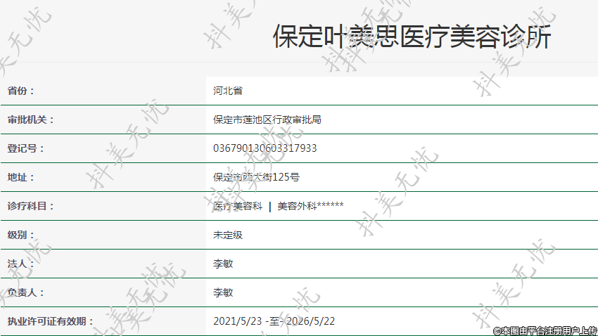 保定葉美思醫(yī)療美容診所成立于2016年8月,經(jīng)保定市蓮池區(qū)行政審批局審批通過的醫(yī)療機(jī)構(gòu)。