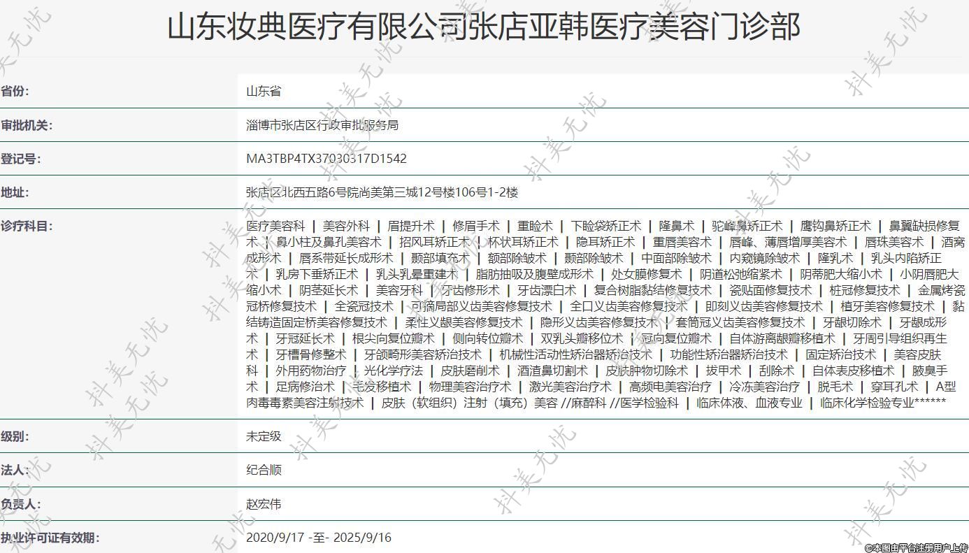 山東妝典醫(yī)療有限公司張店亞韓醫(yī)療美容門診部