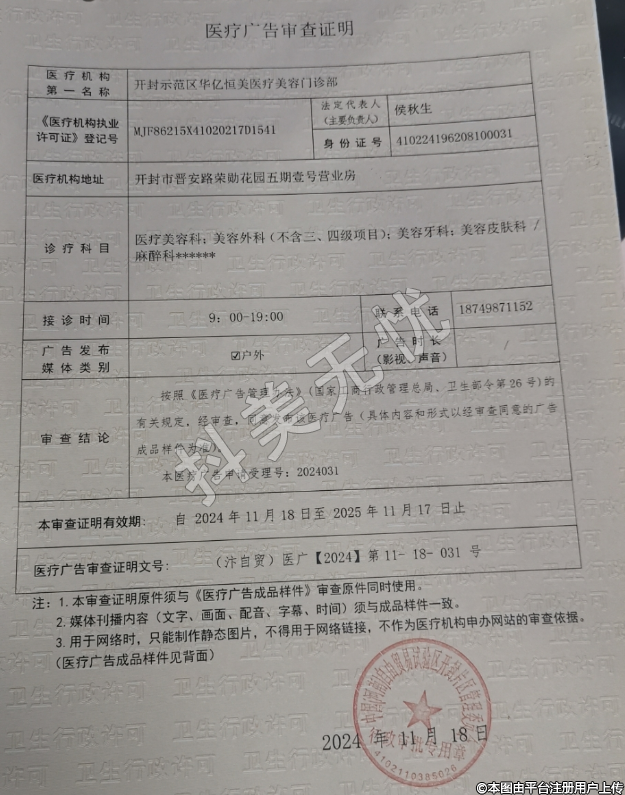 機構(gòu)名稱:開封范區(qū)華億恒美醫(yī)療美容門診部