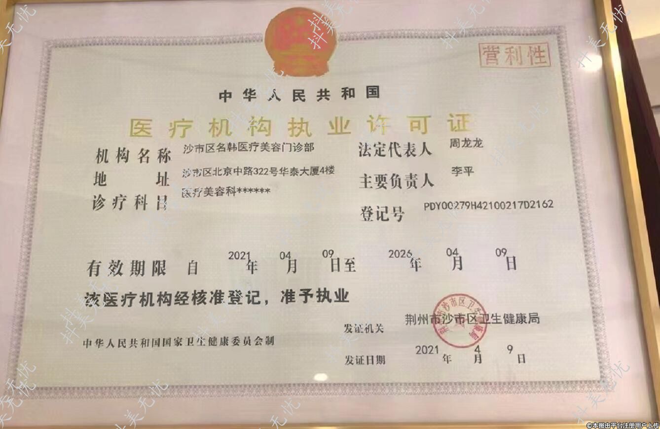 機(jī)構(gòu)名稱(chēng):沙市區(qū)名韓醫(yī)療美容門(mén)診部