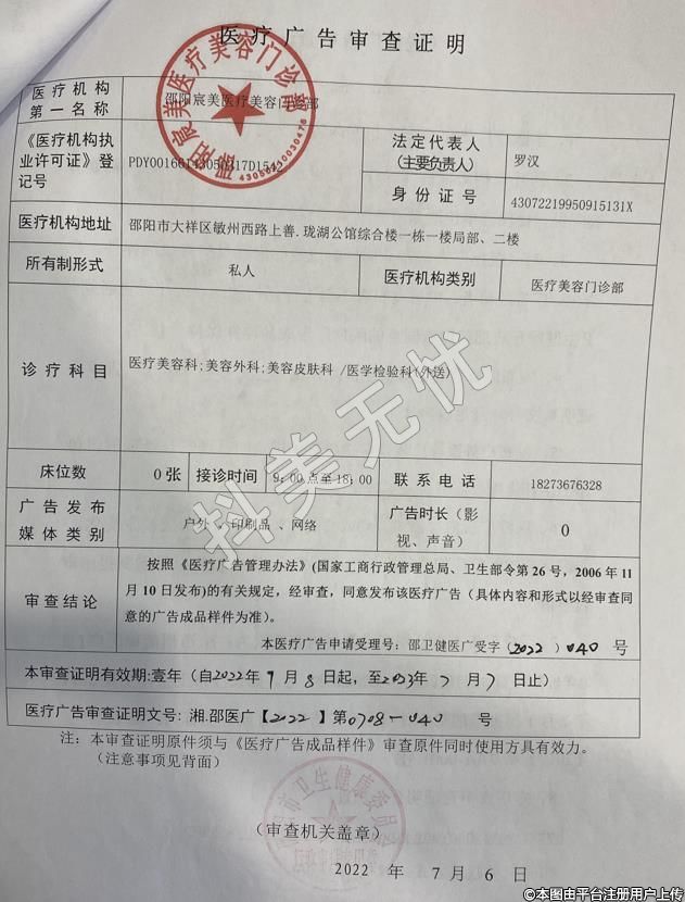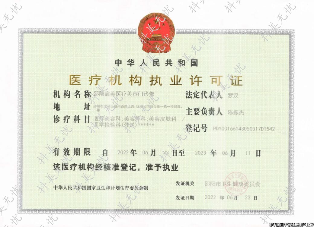 機構(gòu)名稱:邵陽宸美醫(yī)療美容門診部