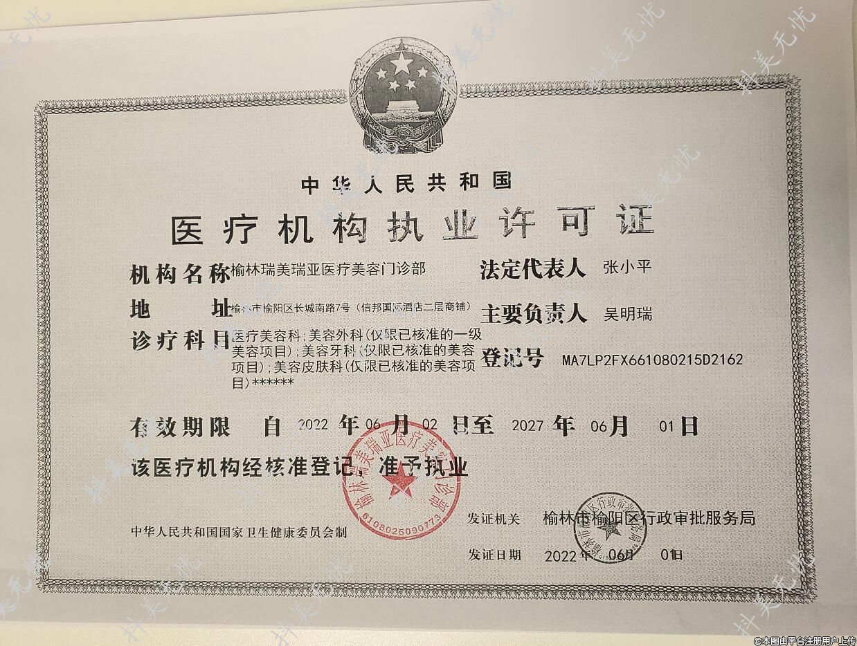 機構名稱:榆林瑞美瑞亞醫(yī)療美容門診部