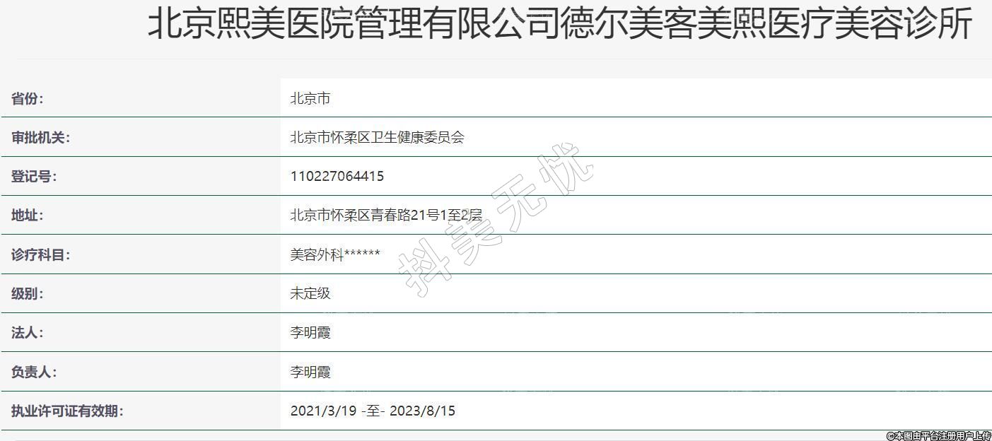 北京熙美醫(yī)院管理有限公司德爾美客美熙醫(yī)療美容診所