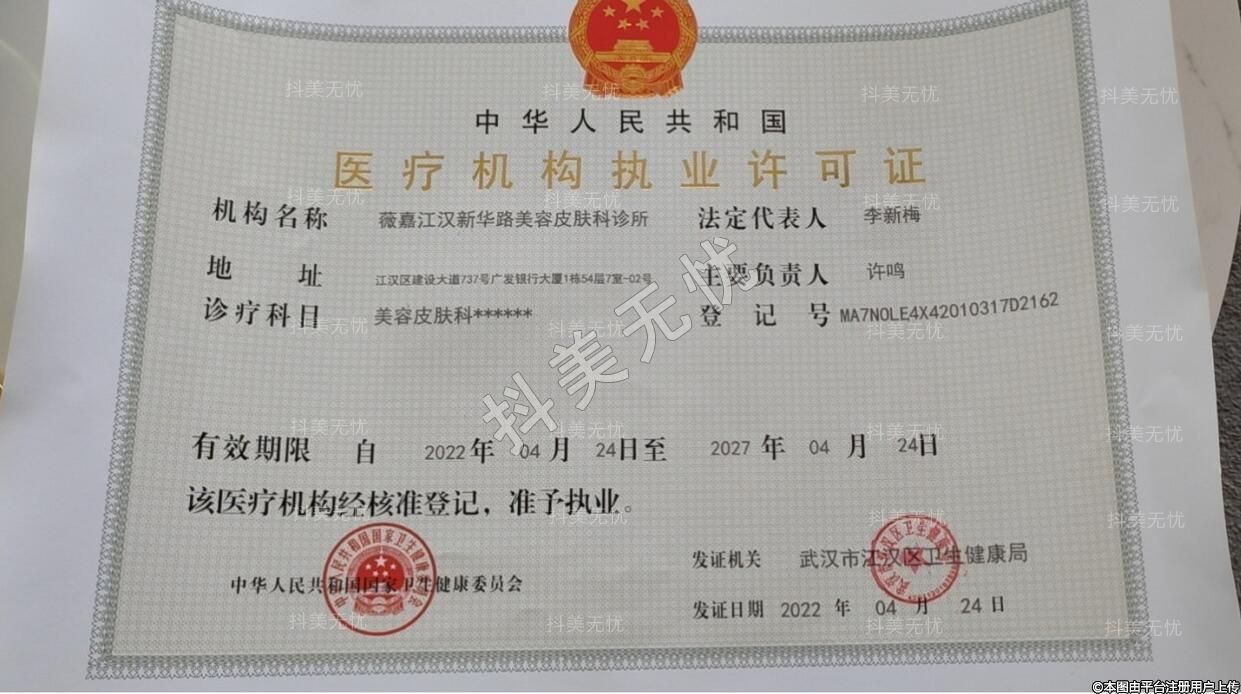 機構(gòu)名稱:薇嘉江漢新華路美容皮膚科診所