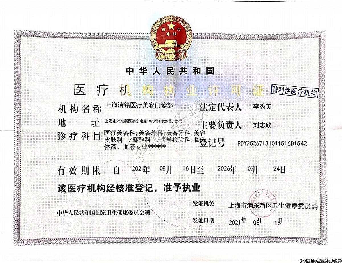 機構(gòu)名稱:上海潔銘醫(yī)療美容門診部