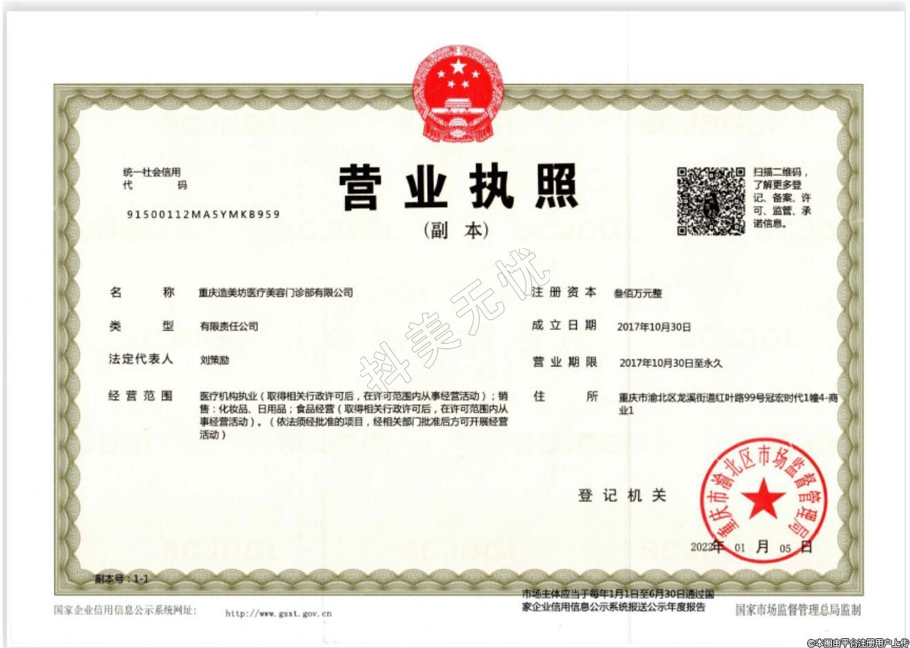 發(fā)證機(jī)關(guān):重慶市渝北區(qū)衛(wèi)生健康委員會