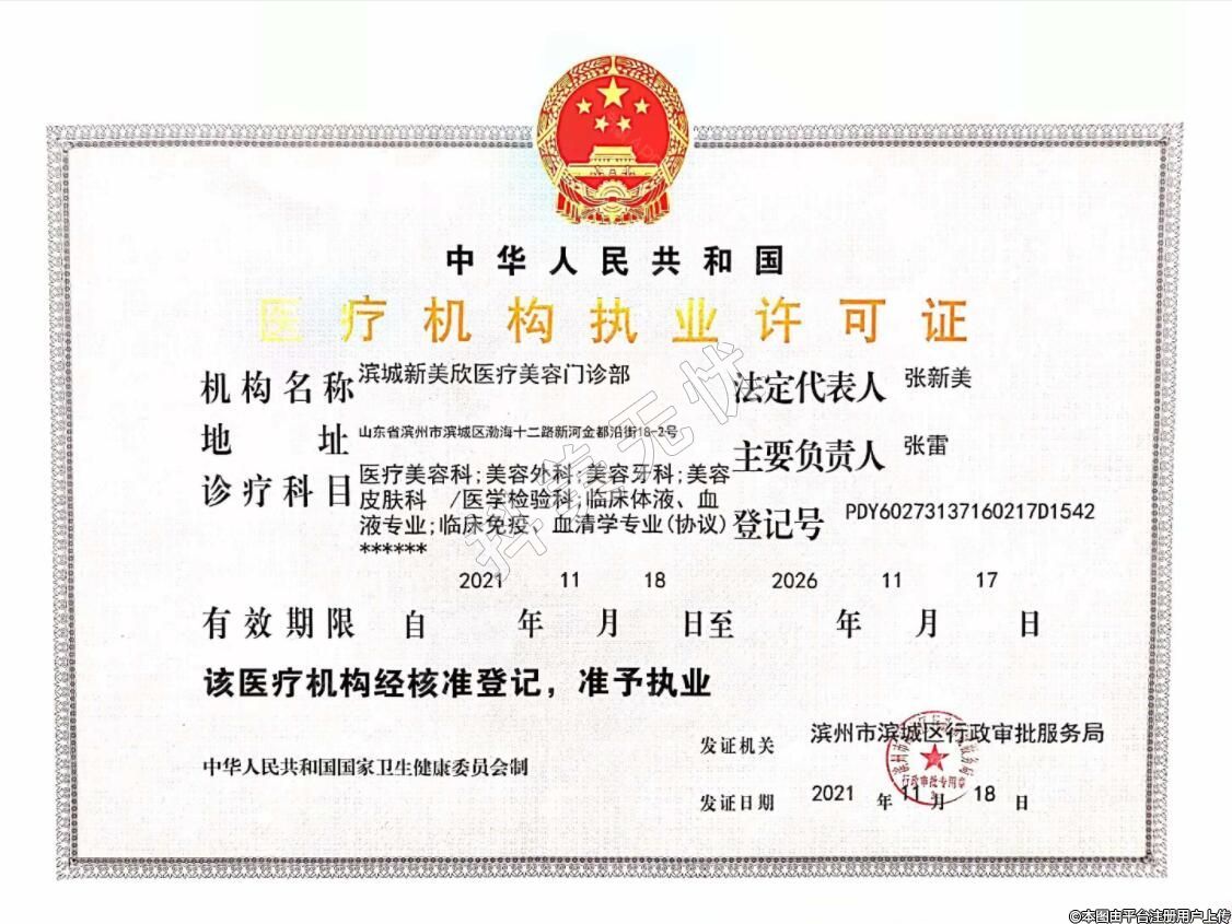 機構(gòu)名稱:濱城新美欣醫(yī)療美容門診部