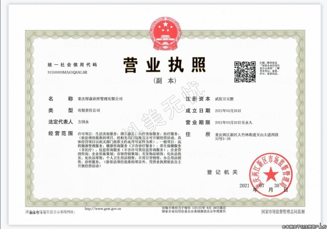 重慶厚森植發(fā)醫(yī)療美容2021-03-26成立,地址:重慶兩江新區(qū)大竹林街道天山大道西段32號2-28號,診療科目:美容外科******
