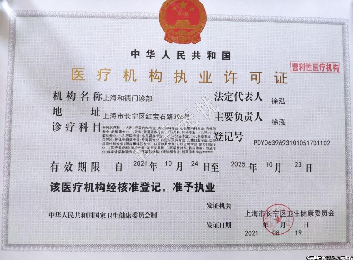 發(fā)證機(jī)關(guān):上海市長(zhǎng)寧區(qū)衛(wèi)生健康委員會(huì)